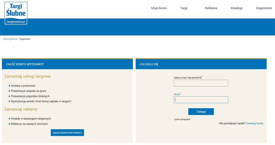 - Rejestracja w serwisie dla wystawców, czyli założenie konta klienta.