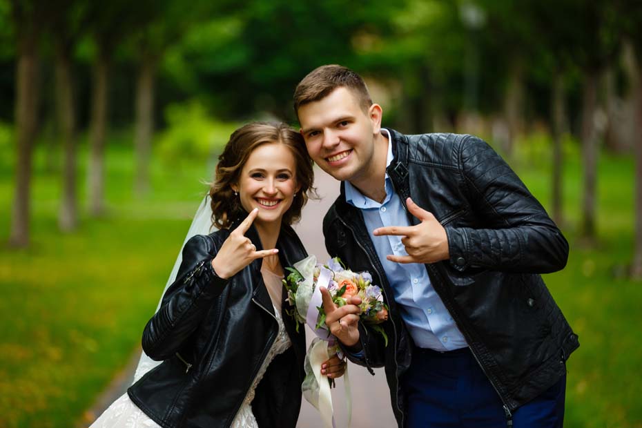 Jeansowa albo skórzana kurtka to także rozwiązanie dla odważnych Par Młodych, które nie przepadają za ślubną klasyką i pragną ją zaaranżować zupełnie po swojemu.
