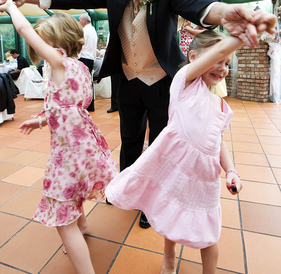 Do organizacji atrakcji dla dzieci może również przyłączyć się DJ lub zespół. Poproście, by stworzyli kilkuminutowy blok piosenek i zabaw. Znane melodie z pewnością ucieszą maluchy i dodadzą dzieciom pewności. Będą miały swoje przysłowiowe 5 minut na parkiecie.
