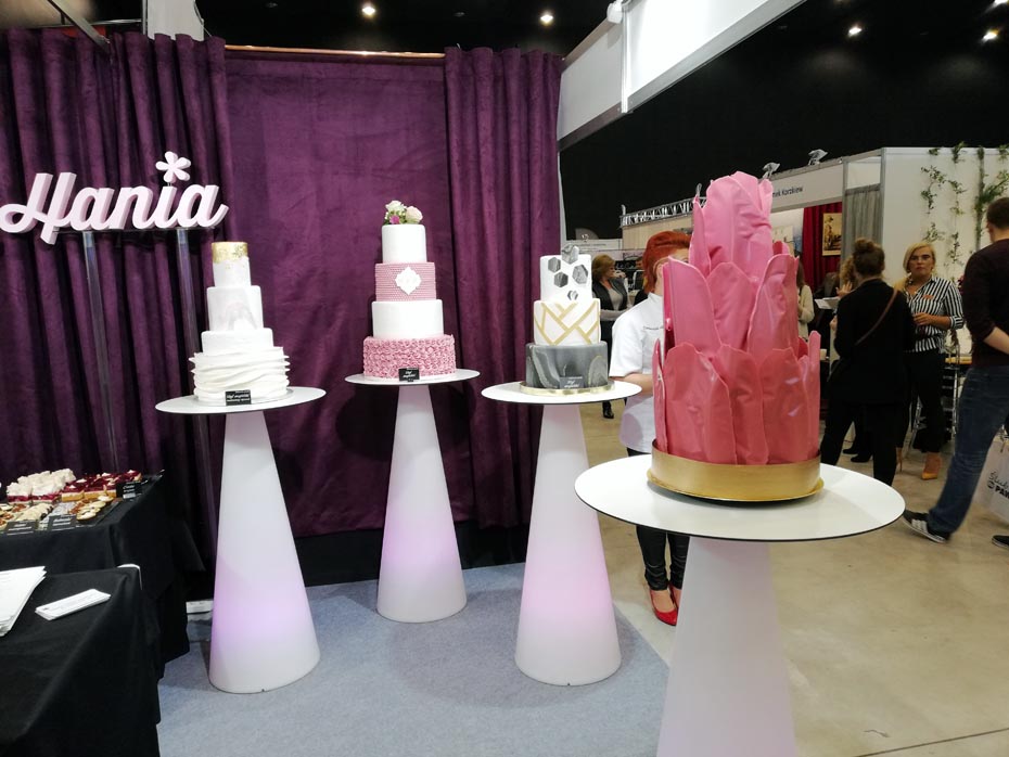 Przejdźmy do konkretów. Co zwróciło moją największą uwagę? Tym razem bezkonkurencyjne okazały się stoiska firm cukierniczych. Trudno było oderwać wzrok od imponujących tortów i słodkich stołów przygotowanych z największą starannością. Pierwszy słodki strzał na dobry początek to Ciastkarnia Marysieńka – urocze babeczki i imponujące piętrowe torty. Nowoczesne propozycje od Cukierni Hania to zdecydowanie propozycja dla miłośników stylu glamour. Makaronikowe szaleństwo to targowy znak rozpoznawczy Pracowni Cukierniczej Stefanka. Na szczególną uwagę zasługują torty z Cukierni Mateusz Skórok – moje serce w całości skradły naked cake i dekoracje z sukulentów, które doskonale współgrają ze stylem minimalistycznym.