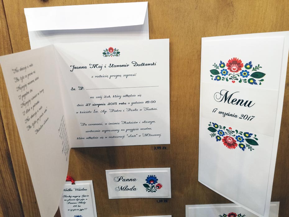 Przy stoiskach z papeterią ślubną zawsze zatrzymuję się na dłuższą chwilę. Kaktusowe motywy od Inkacel, folkowe wzory od Fabryki Zaproszeń, misterne koronki na zaproszeniach i winietkach od Bonartika – duża różnorodność, wysoka jakość wykonania i kreatywność, czyli właśnie to, czego szuka każda Młoda Para.