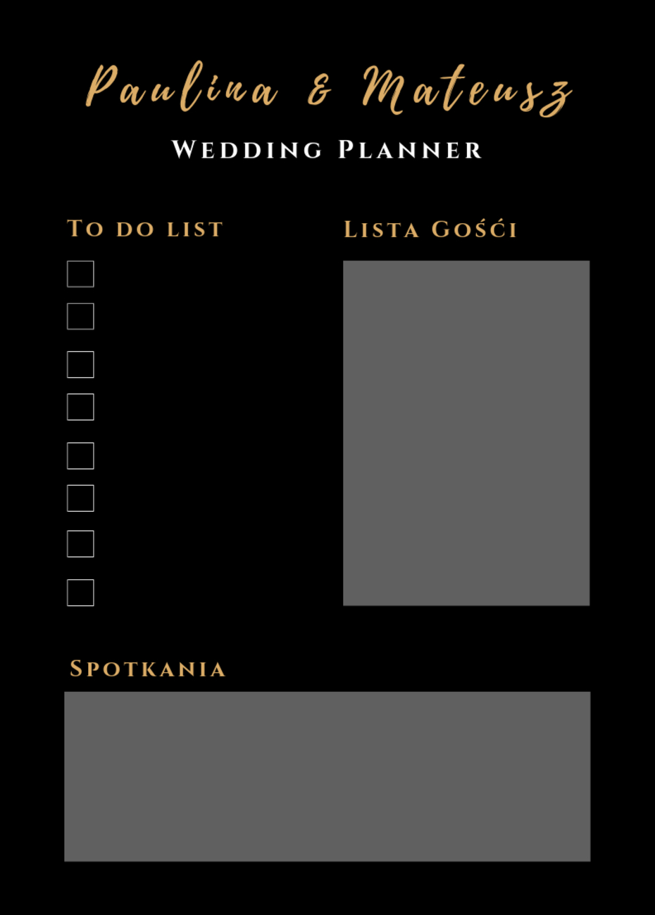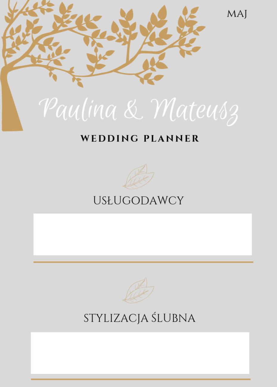 Poniższe projekty dotyczą plannerów ślubnych, które opierają się głównie na wyszczególnionych obszarach, w których zapisujemy najważniejsze informacje oraz daty związane z organizacją ślubu.