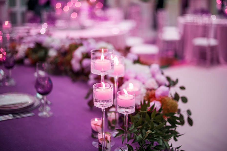 Ultra violet może stać się kolorem przewodnim Waszej uroczystości. Wyraziste dekoracje, dodatki do stylizacji Pary Młodej, kwiaty, papeteria i wiele innych elementów, które doskonale prezentują się w tym odważnym odcieniu. Panny Młode mogą wykorzystać ten kolor również w ślubnym makijażu. Ultra violet znakomicie sprawdzi się w konwencji glamour.
