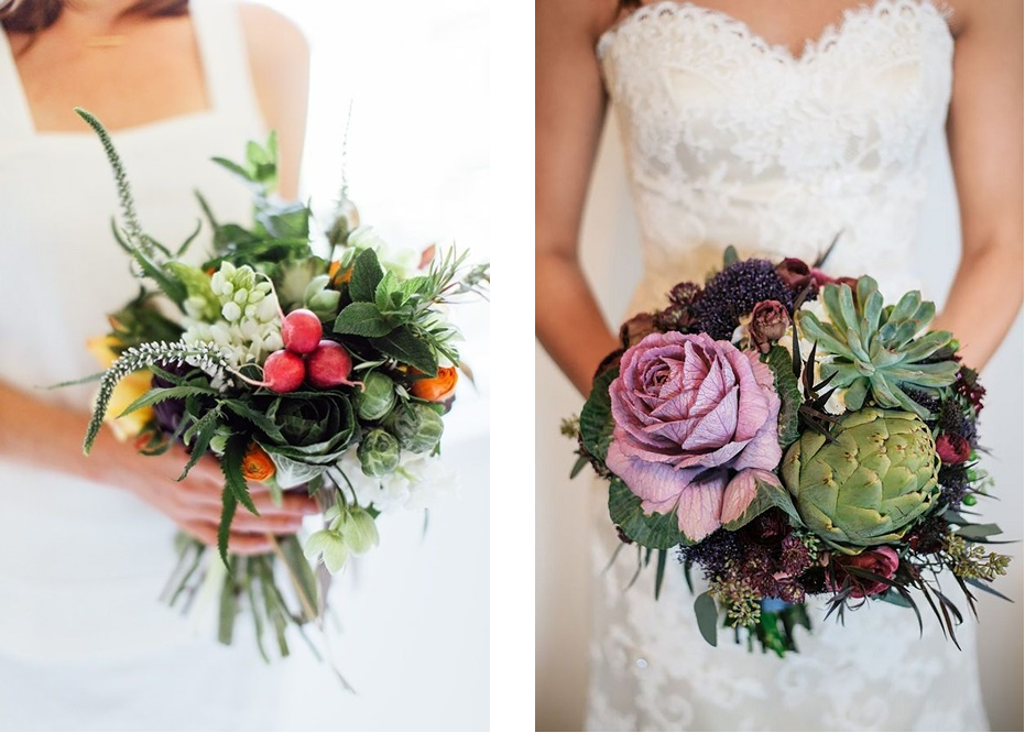 Nastała moda na wszystko, co wiejskie – stoły z przekąskami, studio fotograficzne zasypane słomą ze starym wozem drabiniastym, sesje zdjęciowe w plenerze, w łanach zboża, przyjęcia weselne organizowane w stodołach czy uroczych zakamarkach dużych sielskich ogrodów. W takich przypadkach proponowane bukiety warzywne będą strzałem w 10. Będą się doskonale komponowały i stanowiły niejako tło i uzupełnienie do całego anturażu.