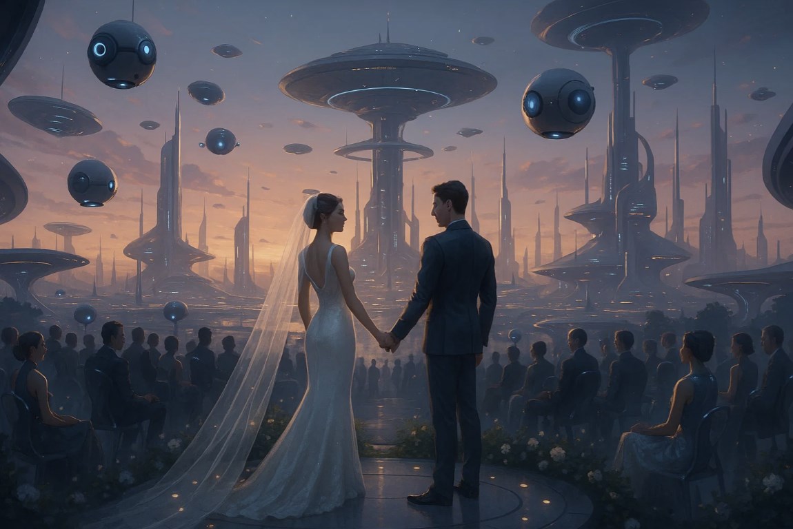 Chcesz ślub w Watykanie, na plaży, w lesie, pod gwiazdami albo na dachu hotelu w Nowym Jorku? W 2035 to bułka z masłem – mobilna kopuła przyjeżdża na miejsce, rozkłada się w godzinę, wyświetla obrazy 360 i odtwarza echo jak w katedrze Notre Dame.