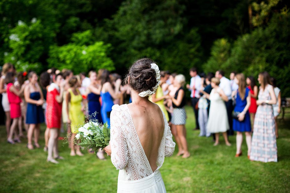Drugi zwyczaj to rzucanie bukietem. Panna Młoda staje do panien tyłem i rzuca swoim bukietem ślubnym.