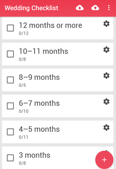 Jeżeli posługiwanie się językiem angielskim nie sprawia Ci problemu, to jestem przekonana, że ta aplikacja przypadnie Ci do gustu. W pewnym stopniu jest połączona z poprzednią, ale zdecydowanie bardziej rozbudowana pod kątem planowania działań. Wszystkie zadania macie podzielone etapami. Aplikacja podpowiada Wam, co powinniście wykonać rok przed ślubem, kilka miesięcy wcześniej, itd. Po kliknięciu na konkretny okres czasu, aplikacja zada Wam pytania, czy zostały wykonane zadania, które musicie załatwić w tym czasie. Możecie dowolnie modyfikować pytania, usuwać niepotrzebne, oraz dodawać te, które uważacie za słuszne.