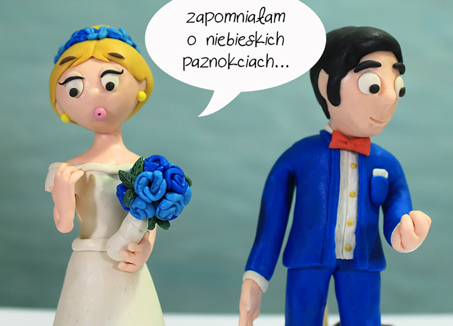 Istnieje również kilka opcji awaryjnych – jeśli żadna z powyższych propozycji nie przypadła Ci do gustu, obowiązek posiadania czegoś niebieskiego możesz zrzucić na Pana Młodego. Mucha, skarpetki, spinki do mankietów, a może garnitur? Na pewno osiągniecie jakiś kompromis.