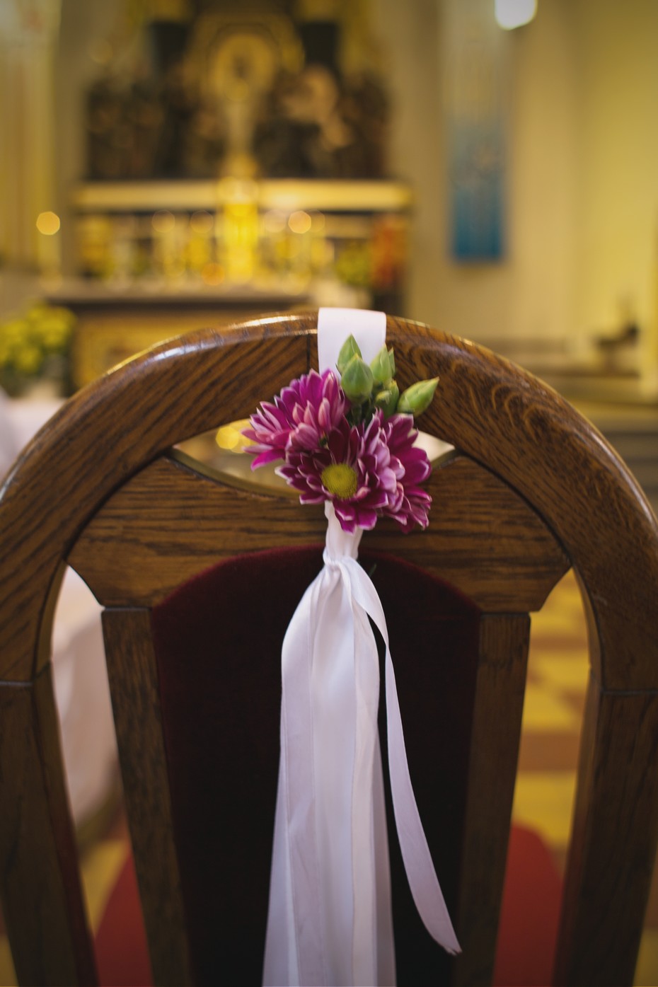 Zadzwoń do swojej florystki czy kwiaciarni, w której zamawiałaś bukiet - może uda się wybłagać jeszcze kilka kompozycji, które ustawisz w kościele. Szanse są małe, ale warto próbować. Jeśli się nie uda, pędź do marketu lub kwiaciarni i zakup ładne kwiaty, najlepiej trwałe typu róże, goździki, margaretki, czy chryzantemy. Obetnij je pod skosem, usuń zbędne liście czy kolce. Zorganizuj też mnóstwo wazonów i w ten sposób udekoruj miejsce ceremonii. Chcesz zaszaleć? Możesz przewiązać owe naczynia wstążką, sznurkiem lub koronką - czymś, co pasuje do klimatu ślubu.