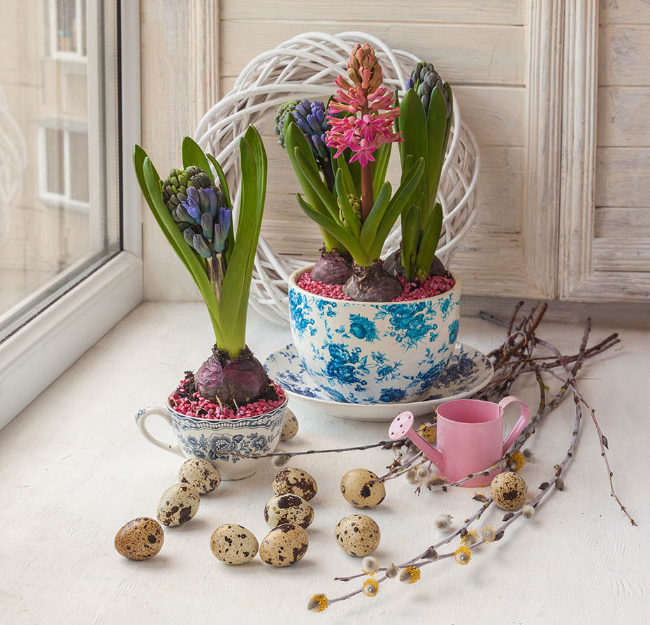 W dekoracjach wielkanocnych najczęściej wykorzystywane są kwiaty cebulowe. Na wiosnę mamy ich zatrzęsienie, a poza tym bardzo ładnie prezentują się w szklanych naczyniach i gdy stoją na stole.