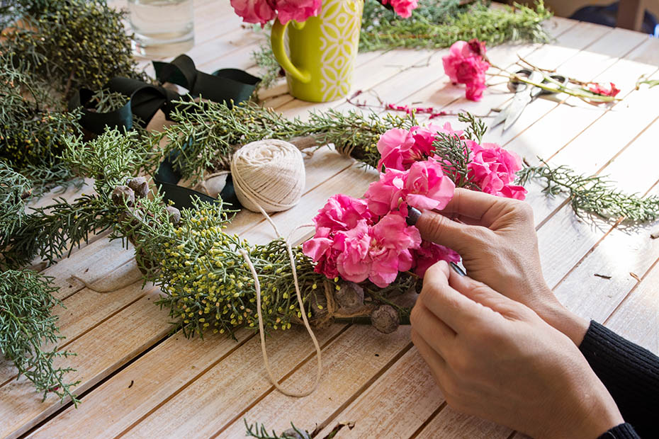 - Nabijacie kwiaty jeden przy drugim tak, aby nie było pomiędzy nimi żadnych wolnych miejsc.