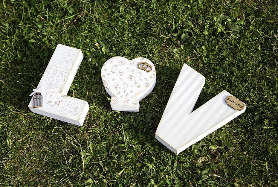 Litery mogą mieć duży format np. 120 cm, a każda z nich grubość 80 cm. Wspaniale wyglądają przyozdobione polnymi kwiatami. Cena za tak piękną ozdobę waha się w granicach od 300 do 400 zł.