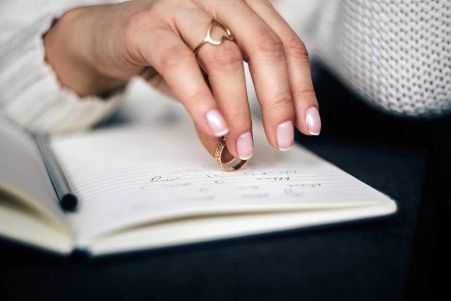 W kroku drugim najważniejsze jest podjęcie decyzji, co chcesz zapisywać w zeszycie ślubnym. Czy ma to być zeszyt pełen inspiracji weselnych? Wtedy zamieszczasz w nim zdjęcia, adresy stron, przedmioty, skrawki materiałów – wszystko, co Ci się podoba i może stać się inspiracją do Twojego wymarzonego ślubu i wesela.