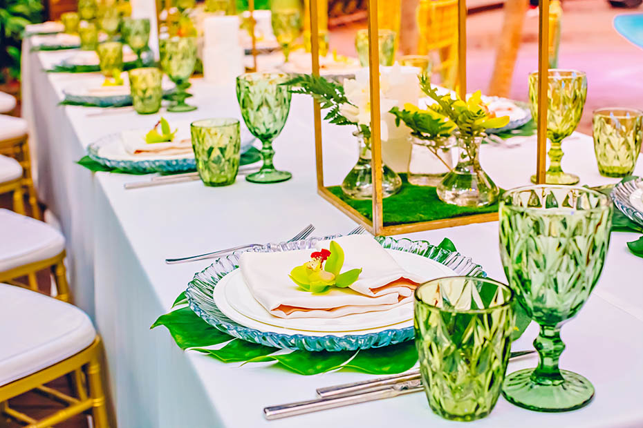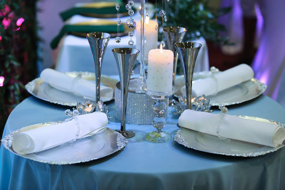 Z tego powodu powinniśmy poświęcić dużo czasu na aranżację tej części sali bankietowej, aby goście delektowali się nie tylko potrawami, ale również patrząc na nakrycia stołowe, doświadczali miłych wrażeń estetycznych.
