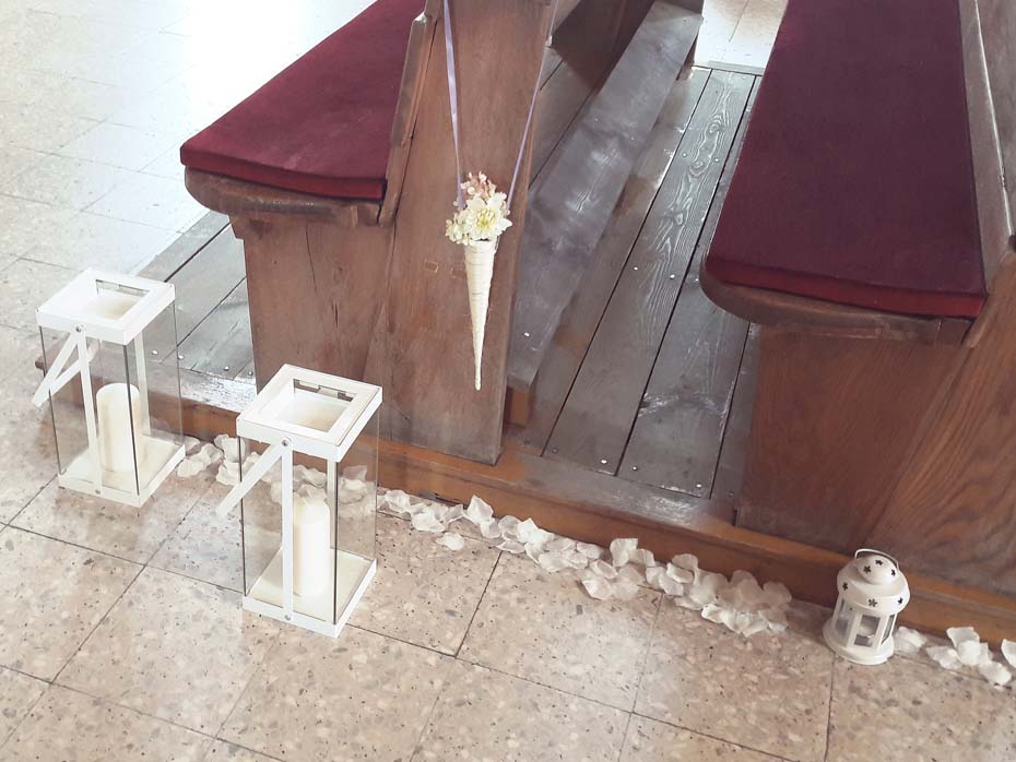 Im więcej świec tym lepiej, jednak nie zawsze kościół wyraża na to zgodę. Wtedy z pomocą przychodzą lampki LED lub swieczki LED. Chwała temu, kto je wymyślił. Umieść je w latarenkach, to klucz do romantycznego klimatu.