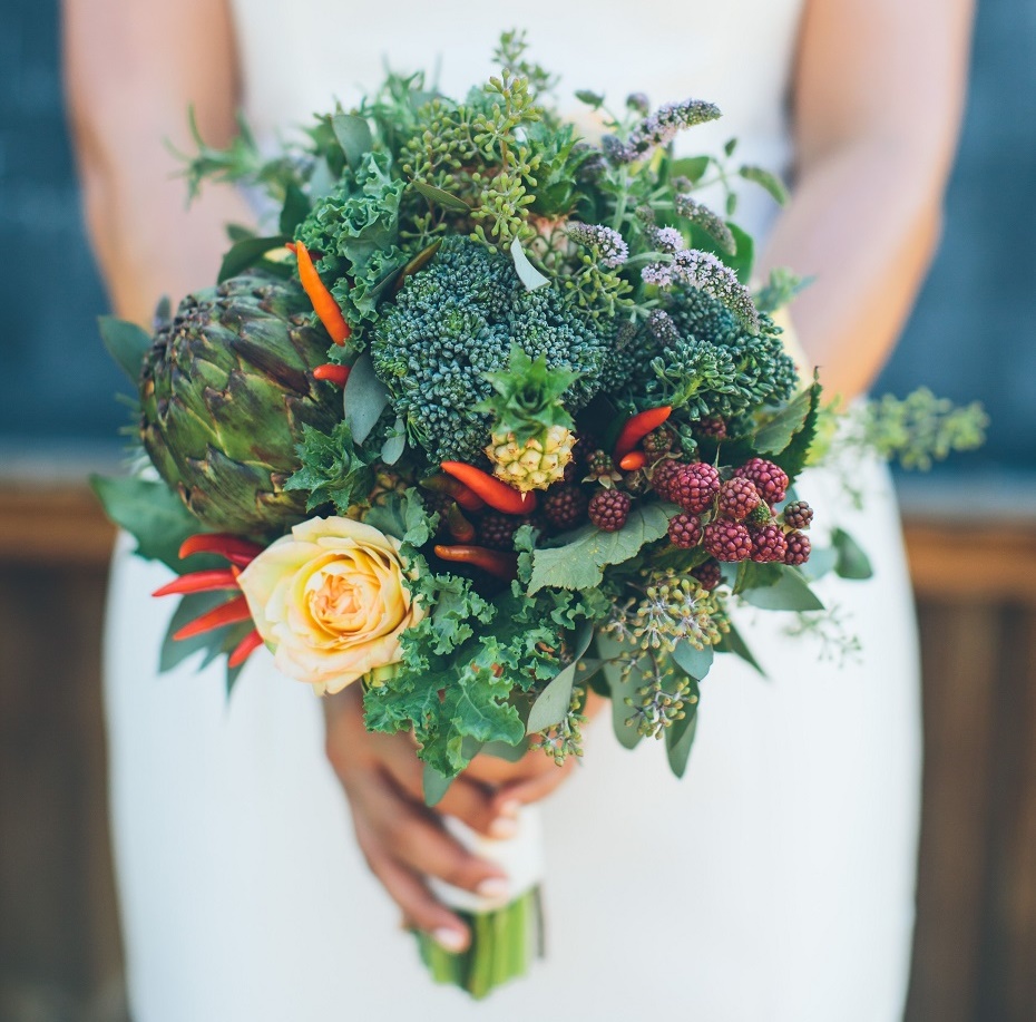 Warzywa zamiast tradycyjnych kwiatów na bukiet dla Panny Młodej
