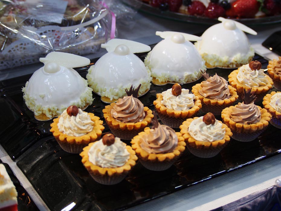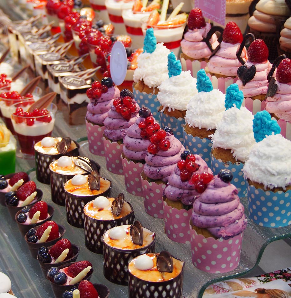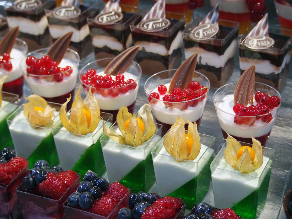 Popularne łakocie, które pojawiają się na ślubach to zdecydowanie babeczki, torciki i tartaletki i cakepopsy, czyli ciasto na patyczkach oblane polewą i udekorowane posypką lub orzechami. Inne popularne elementy to deserki w słoiczkach np. panna cotta czy tiramisu, mini serniczki, eklerki, praliny czy rozmaite musy oraz mini torciki dacquoise.