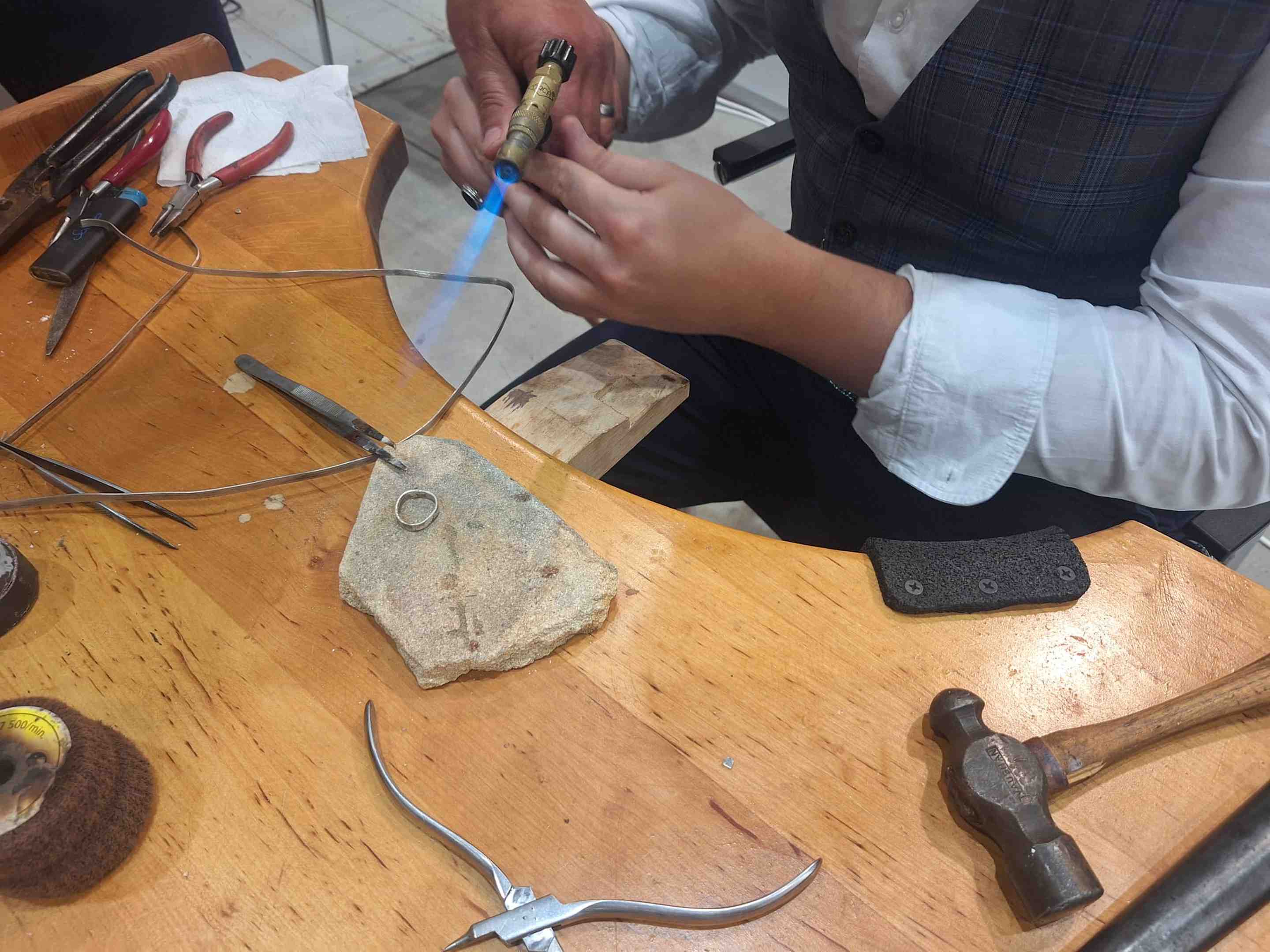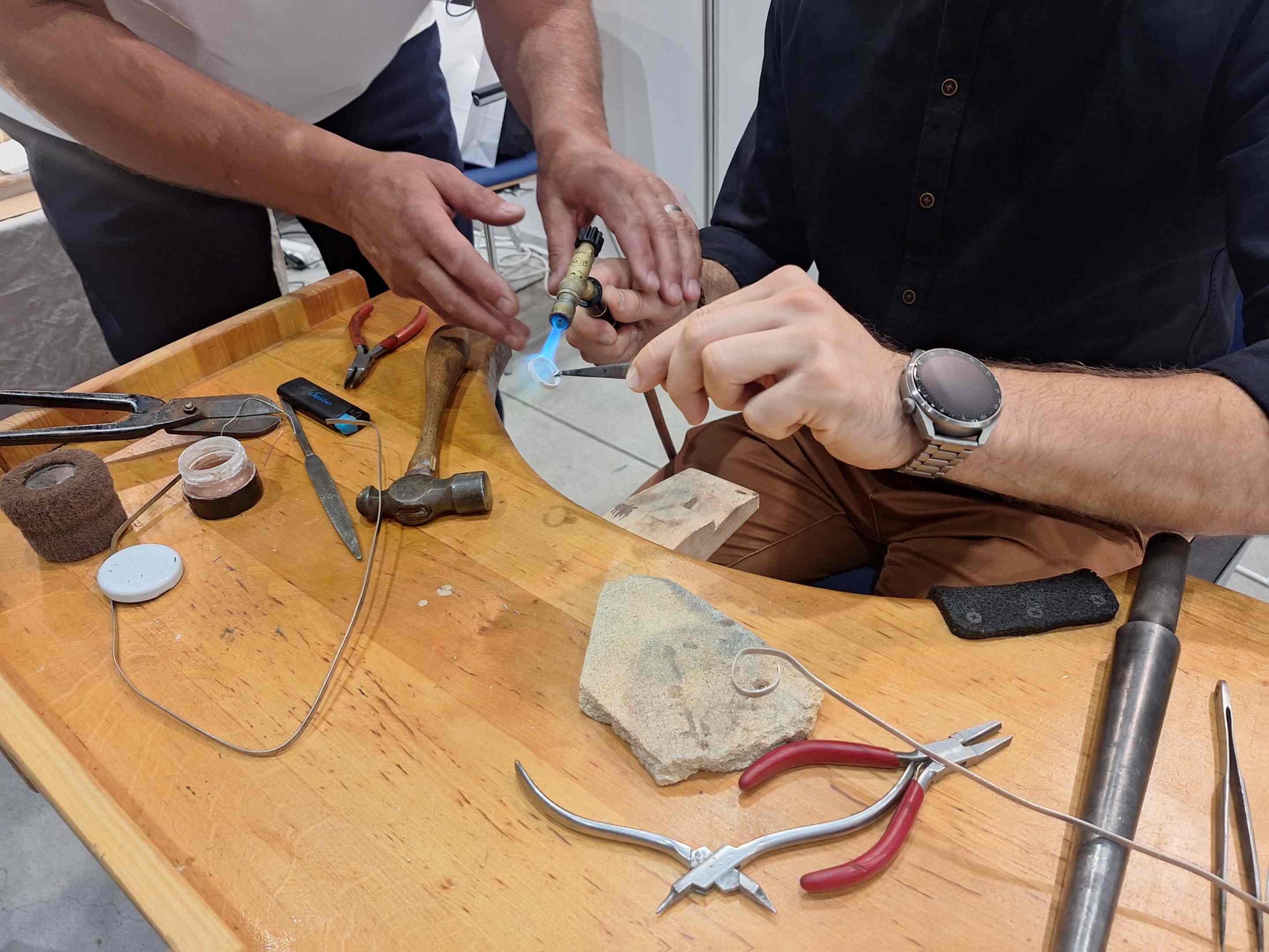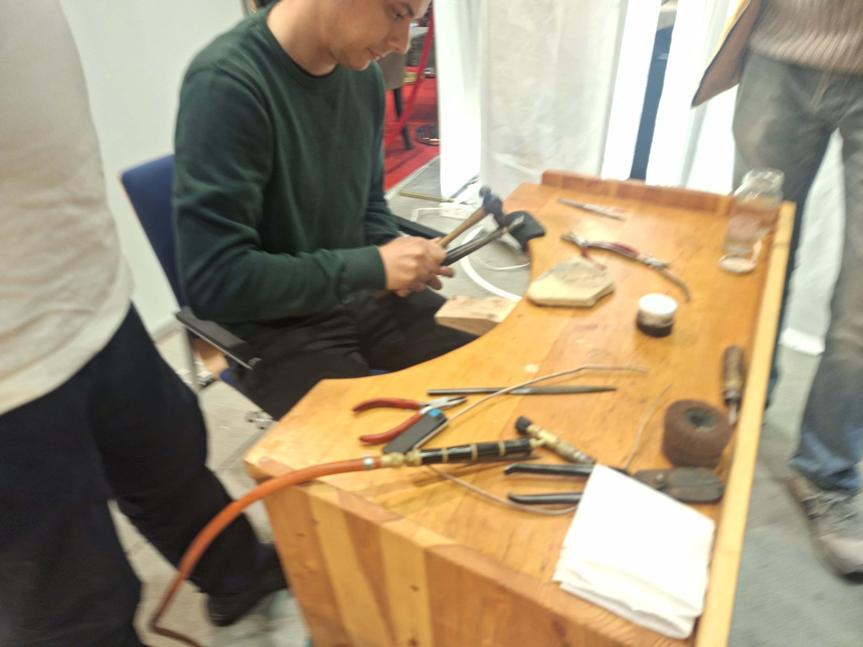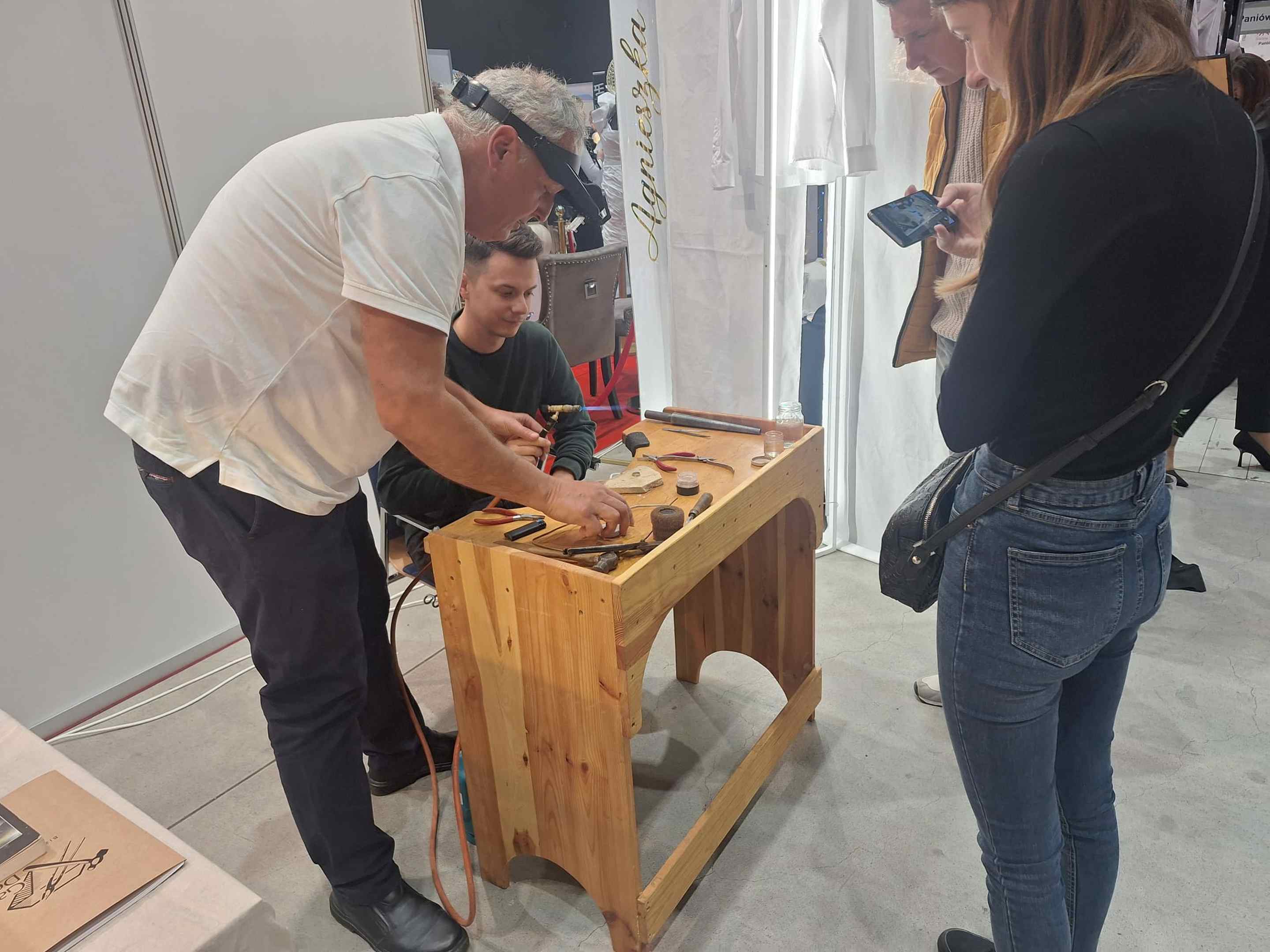 Złotnik Sławomir Derecki w trakcie pokazu – goście mogą z bliska zobaczyć proces tworzenia biżuterii.