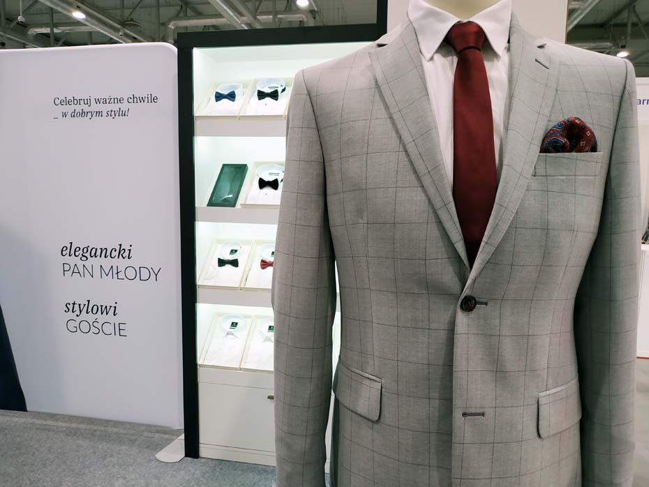 O dziwo, tym razem znacznie bogatszą ofertę zaprezentowały salony z modą męską. Na miejscu można było spotkać takie marki jak Giacomo Conti, Pioba, PAWO, Pawis, Joyvi, KUBENZ, Pako Lorente i jeszcze kilka innych, które prześcigają się w najmodniejszych trendach w stroju Pana Młodego, ale oferują również klasyczne rozwiązania, które zawsze idealnie sprawdzą się przy okazji uroczystości weselnej.