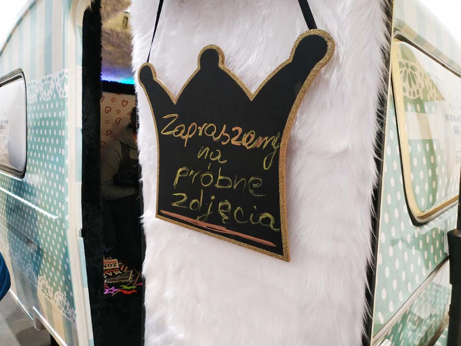 Ciekawą nowością była fotoprzyczepa Selfie Camp w uroczej oprawie, którą możecie zobaczyć na poniższych zdjęciach. Przyczepa wywoływała uśmiech na ustach każdego, kto obok niej przechodził i moja reakcja była taka sama. Firma oferuje 3 pakiety cenowe: za 2 godziny pracy fotobudki w cenie 700 zł, 3 godziny w cenie 800 zł, a za czterogodzinny pakiet trzeba zapłacić 1000 zł. Moją uwagę przyciągnęła również drewniana fotobudka – Foto Kredens. Oba te rozwiązania świetnie sprawdzą się na weselach plenerowych, stylizowanych na alternatywne czy sielsko-wiejskich przyjęciach.