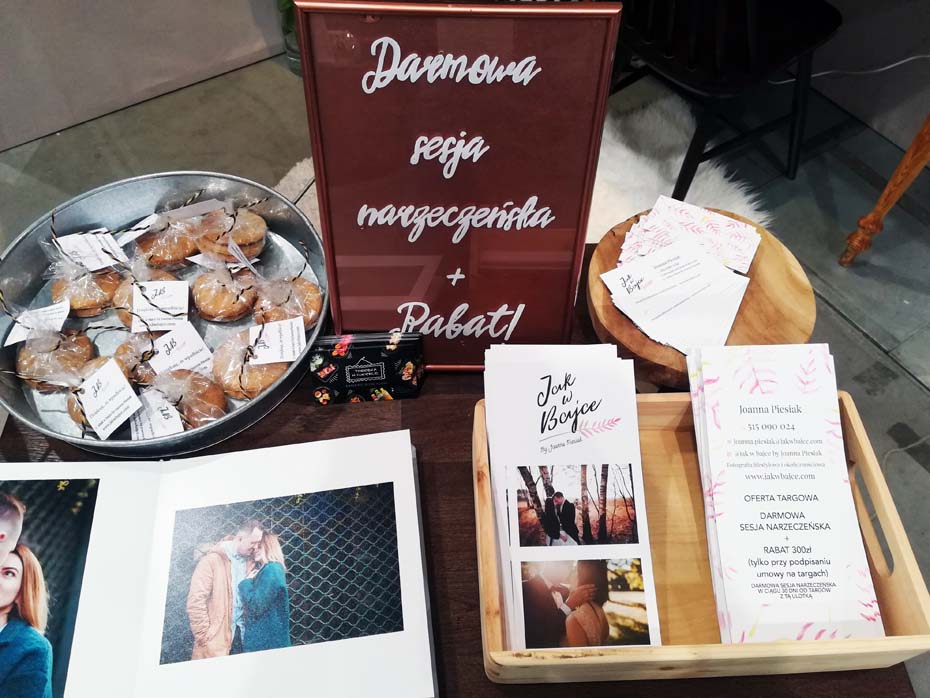 We wspomnianym pakiecie otrzymujemy również fotoksiążkę i pendrive ze zdjęciami. Asia przygotowała specjalną ofertę targową, która składała się z darmowej sesji narzeczeńskiej oraz rabatu 300 zł dla wszystkich, którzy zdecydowali się podpisać w niedzielę umowę. Nie pozostawiła również bez niczego osób, które potrzebują trochę wiecej czasu na zastanowienie – z ulotką targową jest szansa na otrzymanie darmowej sesji narzeczeńskiej jeszcze przez 30 dni po targach.